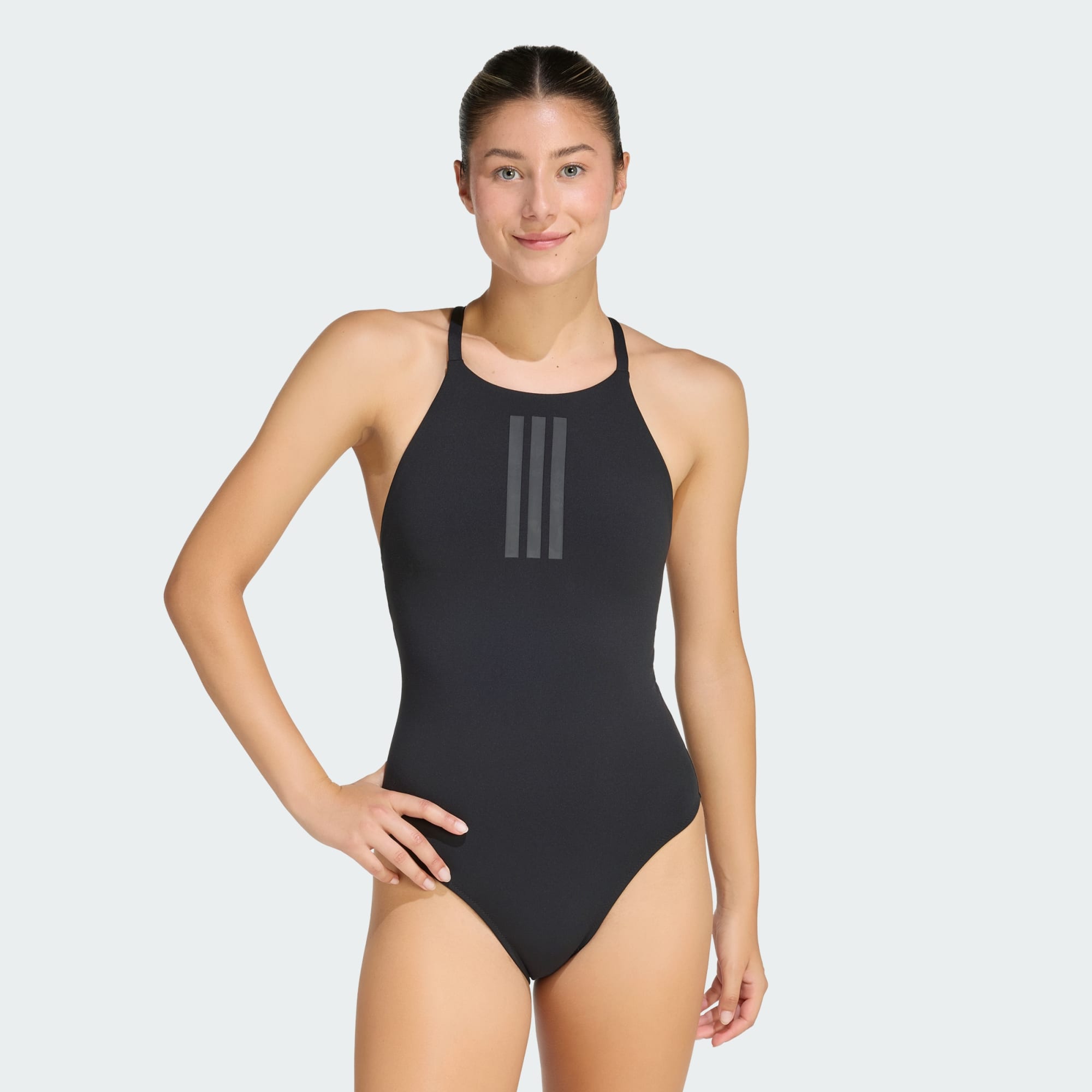 Make a splash with the 3-Stripes High Neck 2-Way Straps Peachsoft Swimsuit. The high-neck design offers a sleek silhouette, while the full-coverage back offers comfort and confidence. The versatile 2-way straps can switch between a classic back or an X-back for a personalised fit. Iconic 3-Stripes add a modern edge, while zig-zag stitching at the leg openings offers flexibility. Made with adidas' Infinitex technology for withstanding chlorine damage for longer, you can dive in with confidence. We celebrate both the swimmer and the sport, without compromising on style.