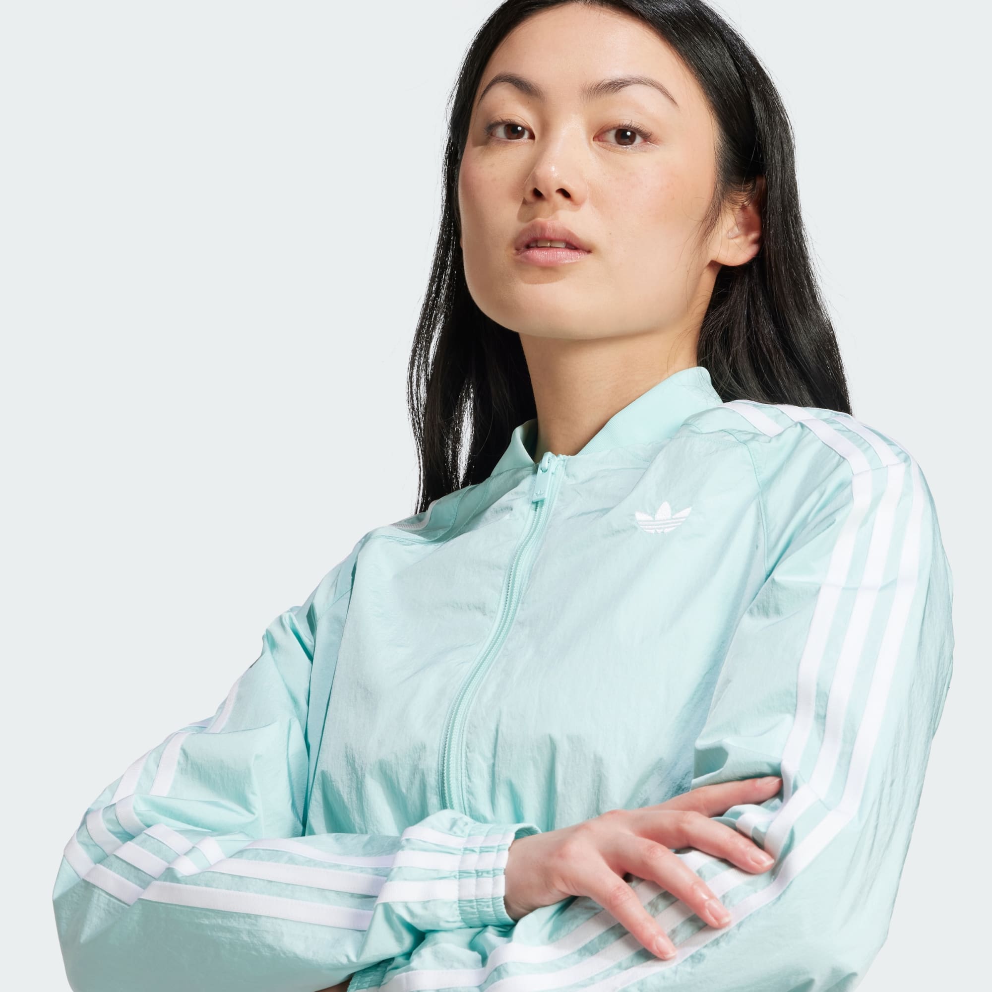 Channel the '00s in this cropped adidas track top. The crinkle fabric and cut lines take inspiration from vintage football shirts. With a slim fit and a mix of matte and shiny finishes, this top is all about sporty style. Pair it with high-waisted jeans or joggers and your favourite trainers for a look that's as bold as it is retro. This product is made with 100% recycled materials. By reusing materials that have already been created, we help to reduce waste and our reliance on finite resources and reduce the footprint of the products we make.