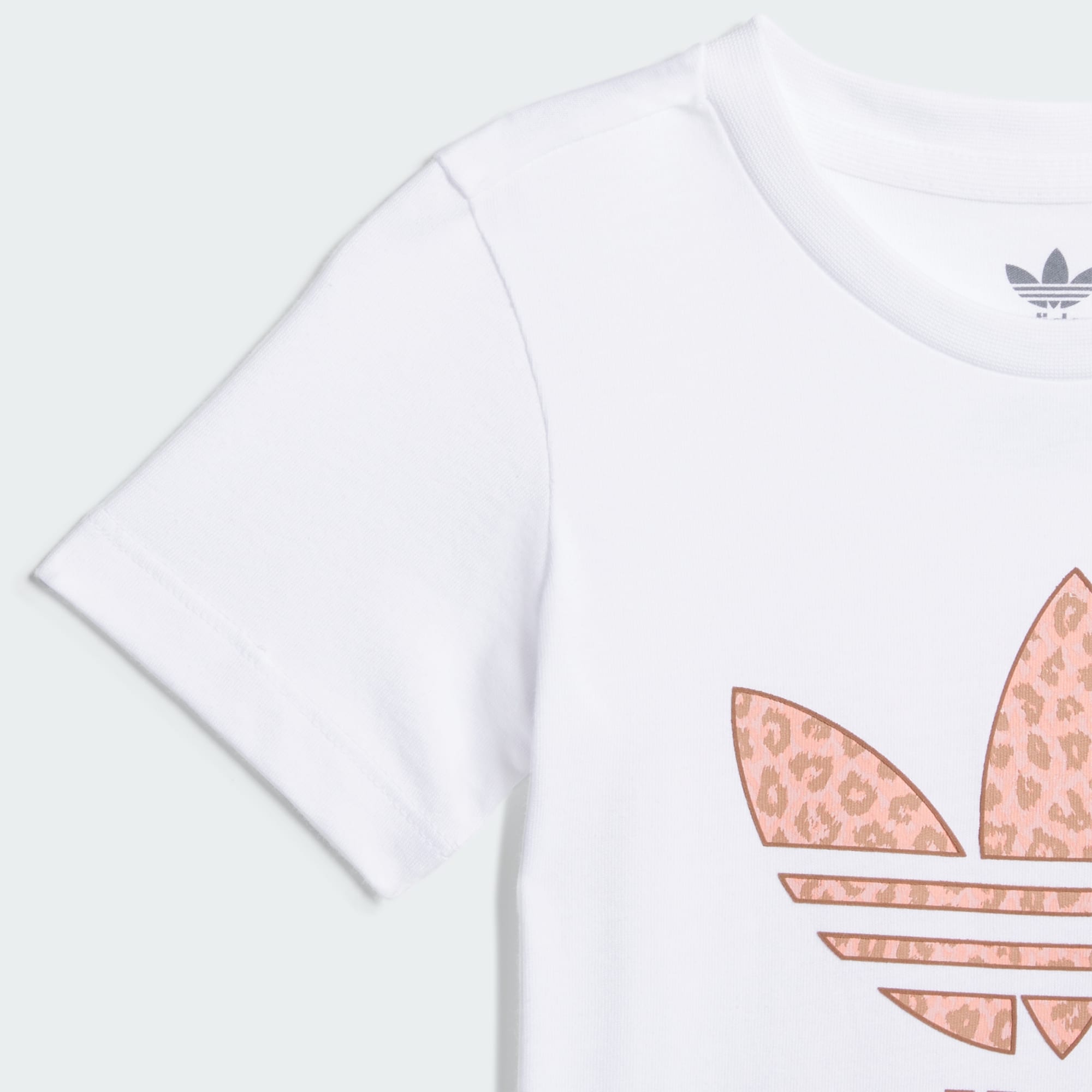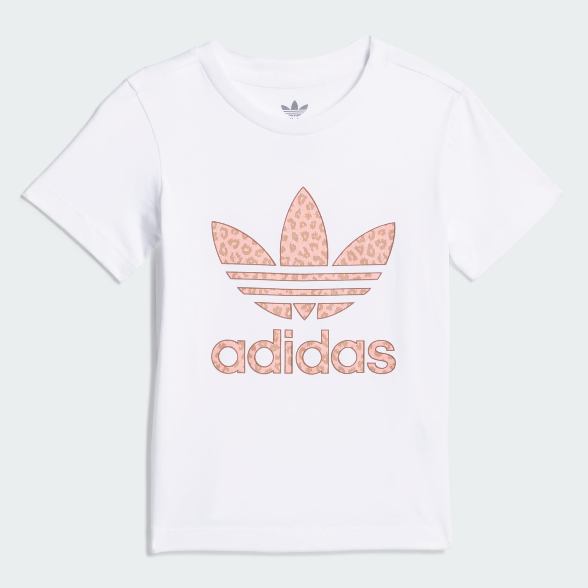 Wild and wonderful. Your little ones will shine in this infants' animal print graphic tee. The star of the show here is the signature Trefoil logo in a fresh tonal cheetah print. The shirt's soft cotton build and relaxed fit make it a comfortable must have for busy days on the go. Whether they're heading to music class or story time, your tiny trendsetters will make a bold statement in this playful graphic tee.