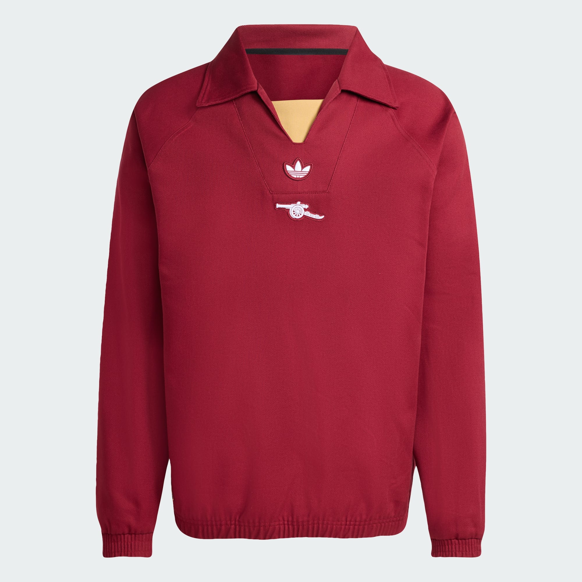 An icon of football fashion. This adidas Arsenal drill top is an essential for dedicated fans. With its embroidered badge and Trefoil logos, it's a stylish tribute to the beautiful game's heritage. The twill fabric feels soft, while the boxy cut keeps your style relaxed. Layer this top over a tee for a casual look, or team it with track bottoms and trainers for a more sporty vibe.
