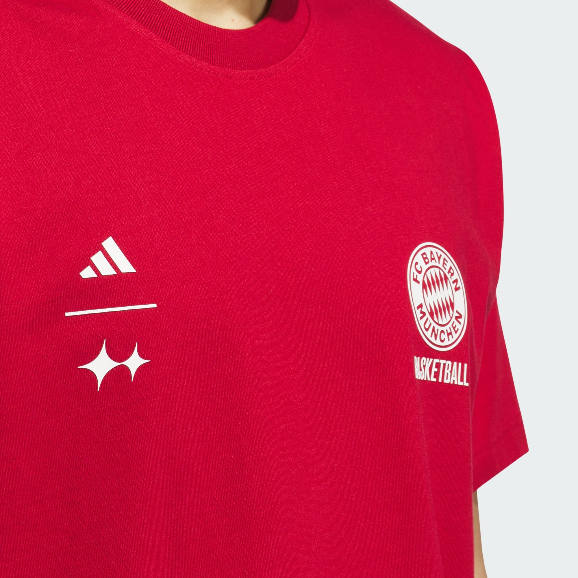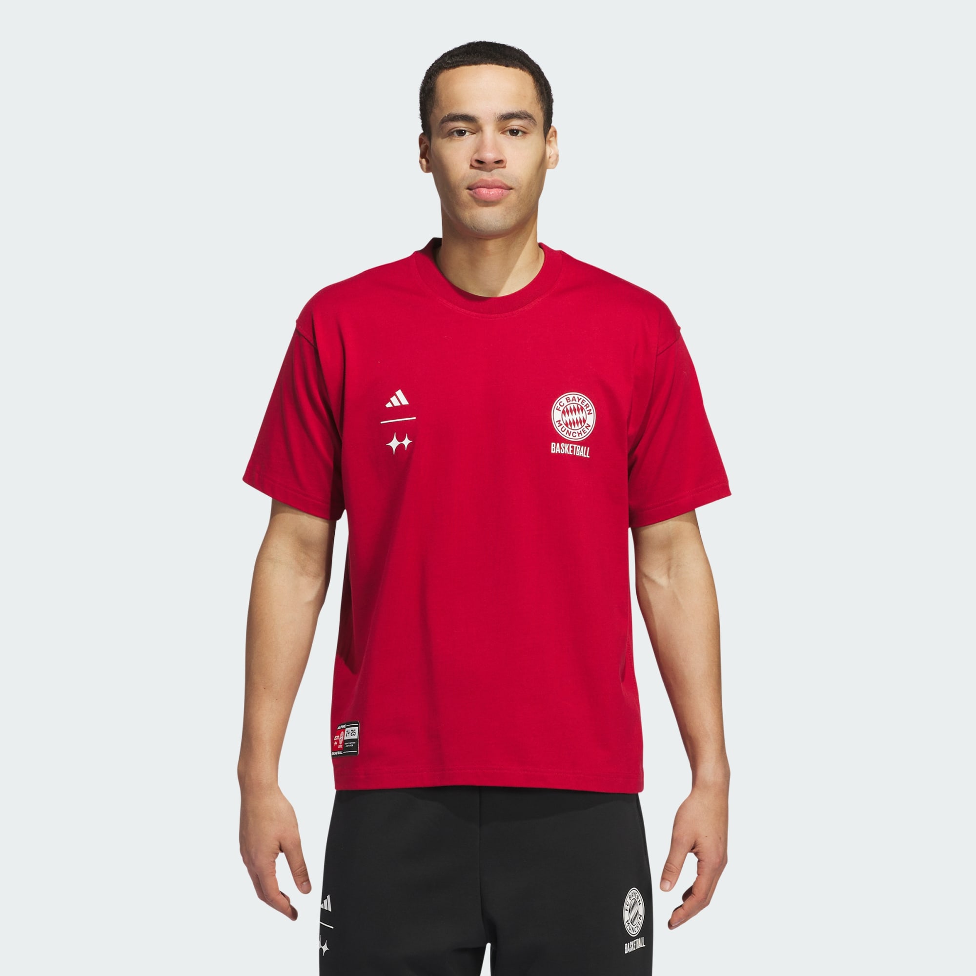 Whether you're on the court or cheering from the stands, this adidas Bayern Basketball tee is ready for game day. Made of soft, lightweight cotton single jersey fabric, it features a bold graphic on the front celebrating one of Europe's most successful basketball clubs. Cut to fit a bit loose, throw on this t-shirt and flow through your next shooting session or afternoon with friends. This t-shirt was made using UNITEFIT — an all-gender fit system that was created with a spectrum of sizes, genders and forms in mind.