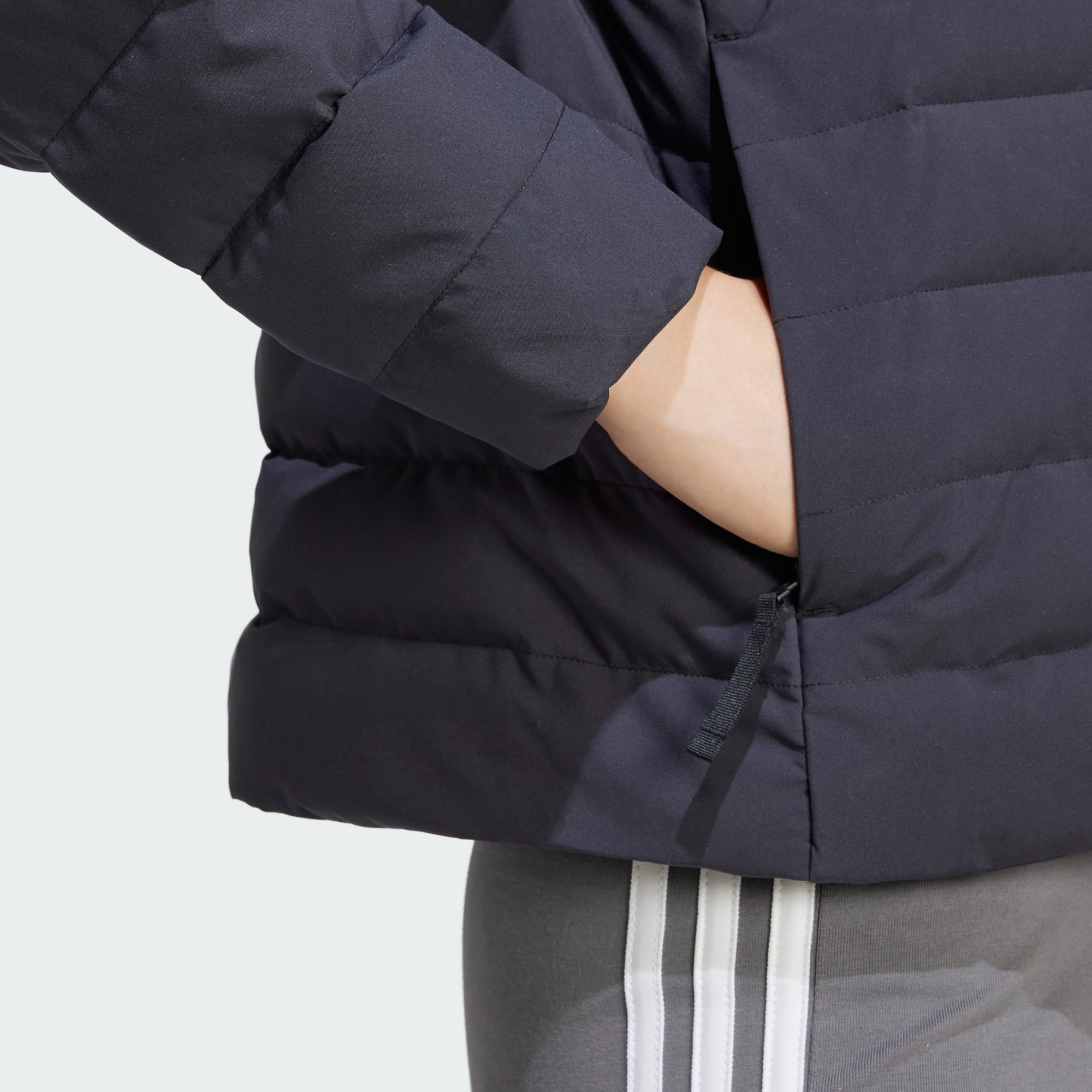 This lightweight down jacket provides effortless warmth whether you're exploring the city or spending time in nature. Zip up the stand-up collar on cold days and keep icy gusts at bay. This adidas jacket has zip pockets to hold your phone, keys and anything else you need. This product is made with 100% recycled materials. By reusing materials that have already been created, we help to reduce waste and our reliance on finite resources and reduce the footprint of the products we make.