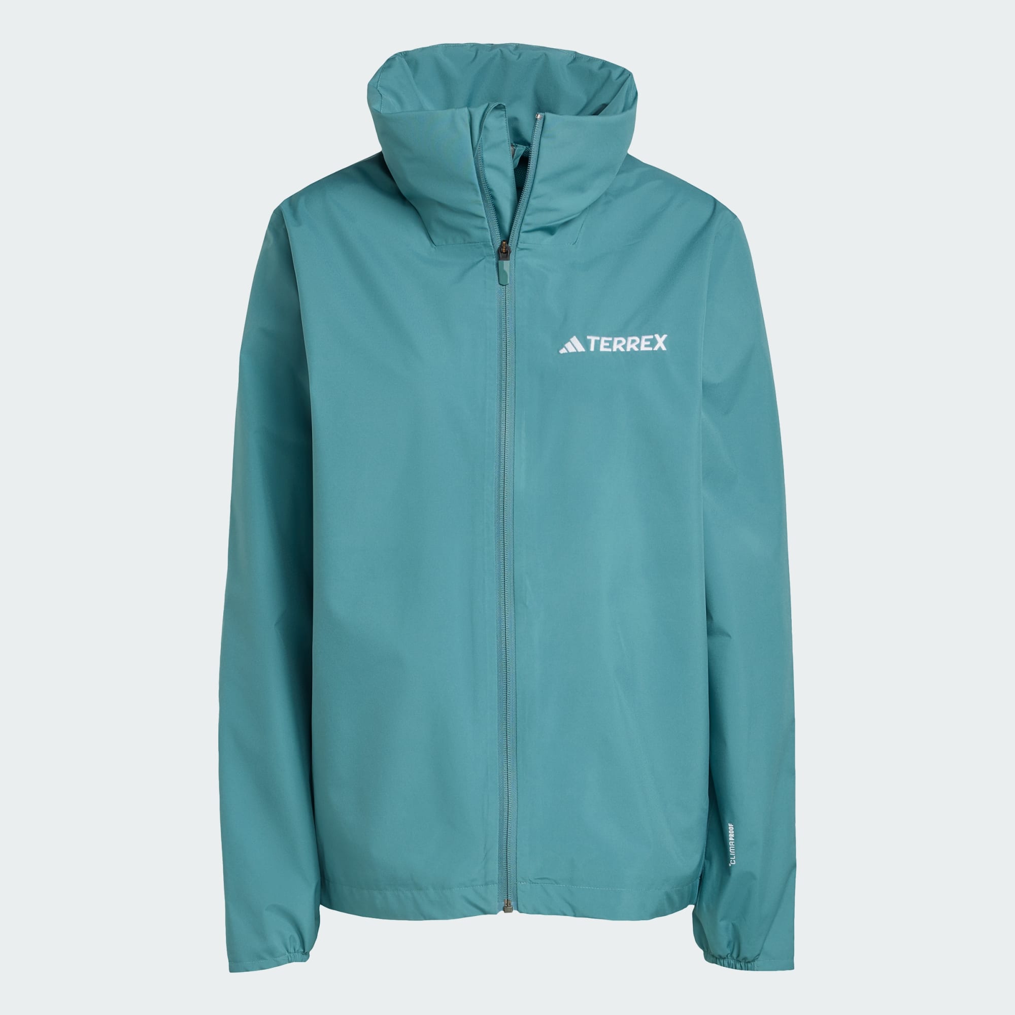 Stay dry and comfortable when the weather turns wet and windy. This adidas rain jacket has the waterproof, breathable performance you need to stay active when the rain sets in. CLIMAPROOF locks out the weather and helps sweat escape for dry, comfortable and unrestricted performance. An elastic drawcord at the hem seals out wind. Secure hand pockets add utility on and off the trail. CLIMAPROOF locks out storms with waterproof materials and design to block harsh weather. Stay free from wind with wind-resistant and breathable material for extra comfort. Engineered features boost protection and breathability.