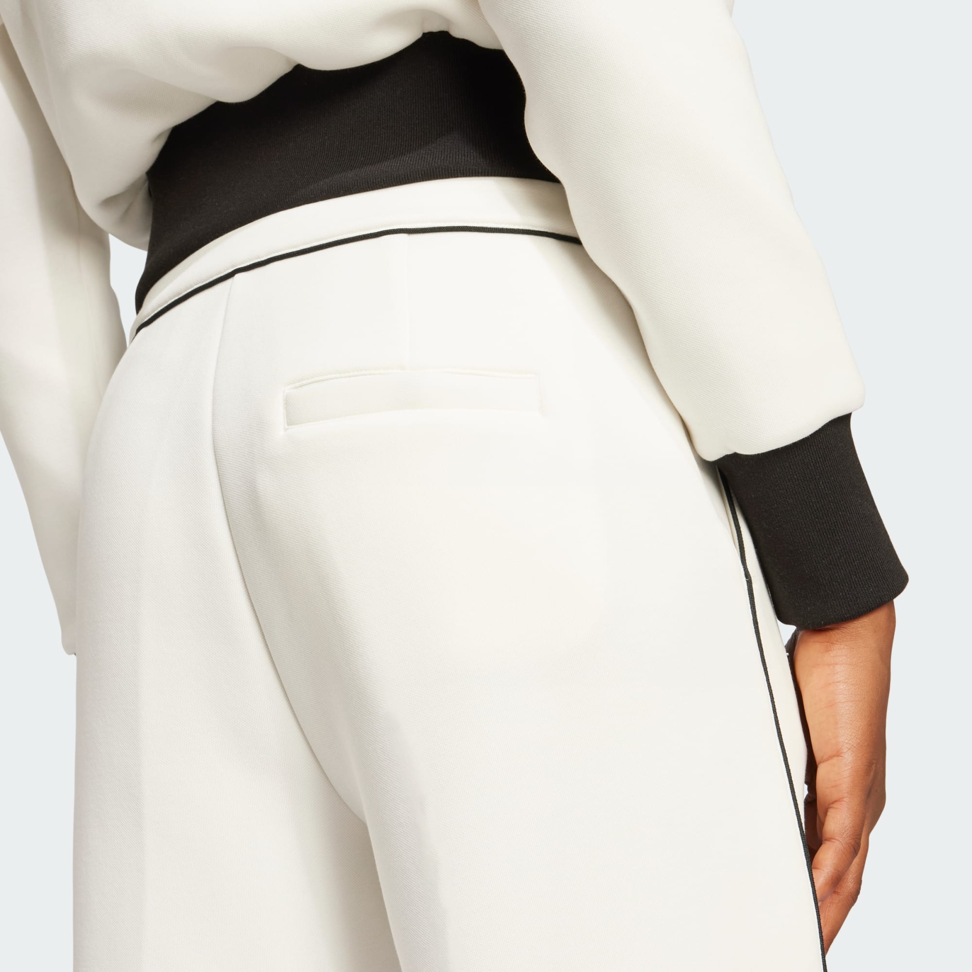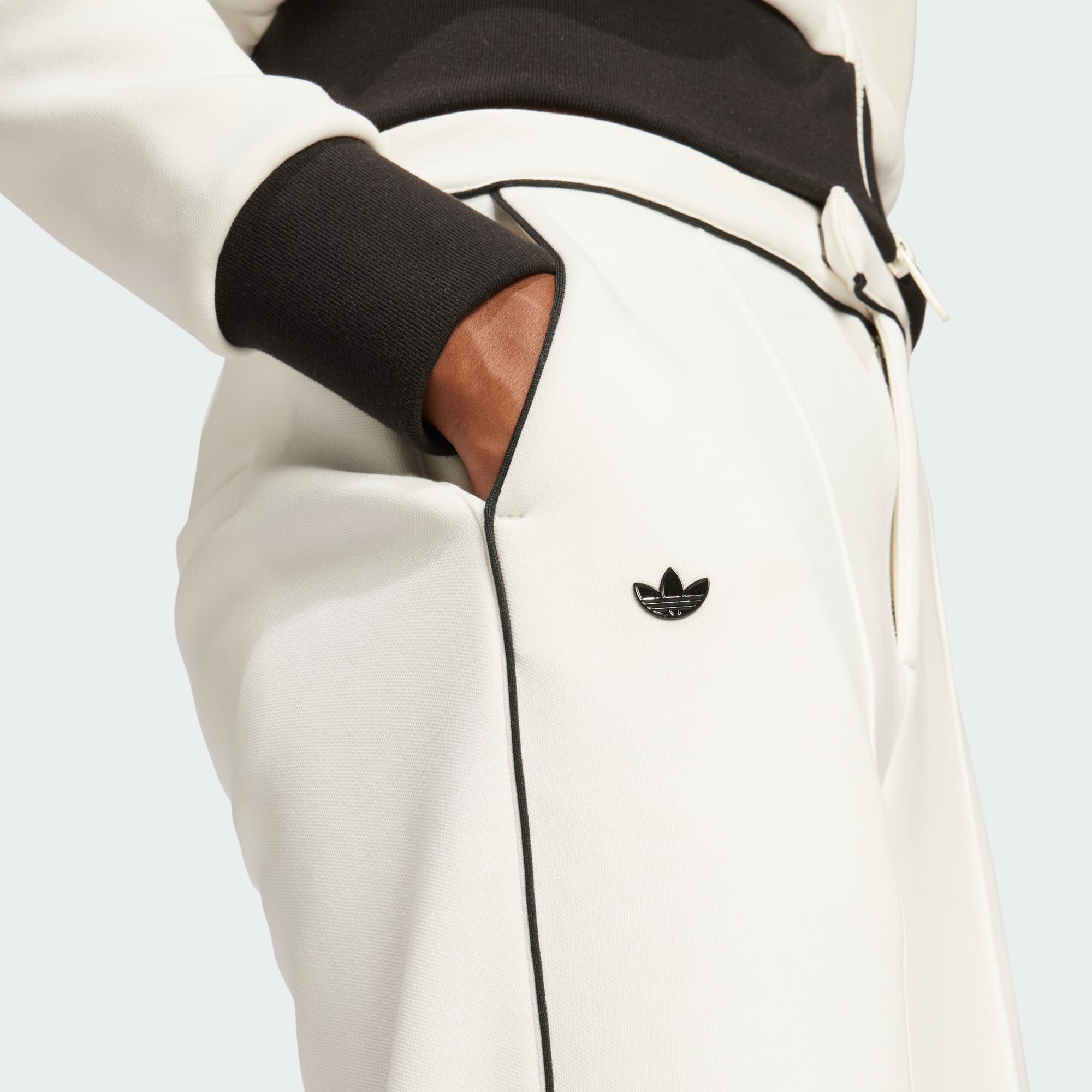 Tailored style meets a hefty dose of archive charm with these premium pants from adidas Originals. Made from cotton and polyester spacer material with knit-in stretch for comfort and a little give, they have a smooth, lofty feel with a look that's both elegant and sporty. They have a clean waistband closure with a zipper and a button and pleats down the straight legs that give them country club wearability. As a final touch, a premium metal Trefoil pin accents the look.