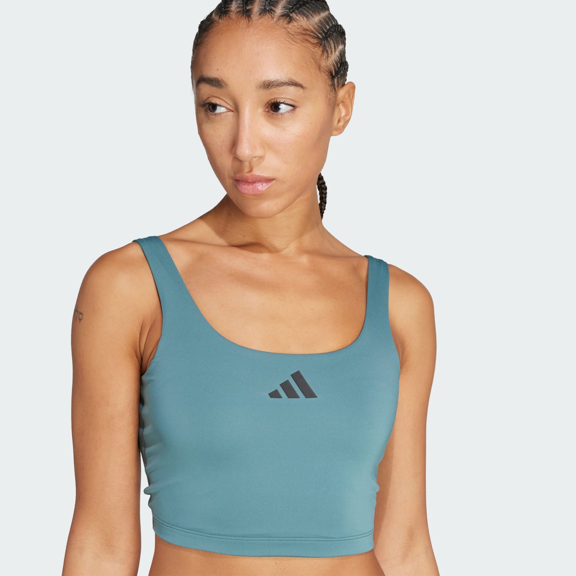 Feel your strength in this adidas workout bra. Four-way stretch fabric offers smooth support for low-impact activities like yoga and weightlifting. CLIMACOOL wicks and disperses sweat for cool, dry and distraction-free performance. CLIMACOOL helps you manage sweat with materials that wick and manage sweat quickly. Its fast-dry fibres give you a fresh-skin feel. Designed for hybrid training and versatile performance.
