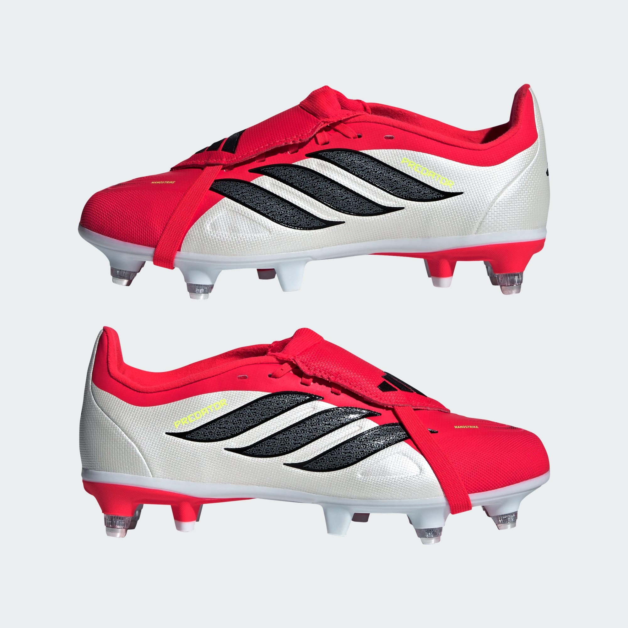 These boots feature Nanostrike technology for softness and lightness, integrated with a haptic overlay for striking precision, and Powerspine technology for midfoot stability.