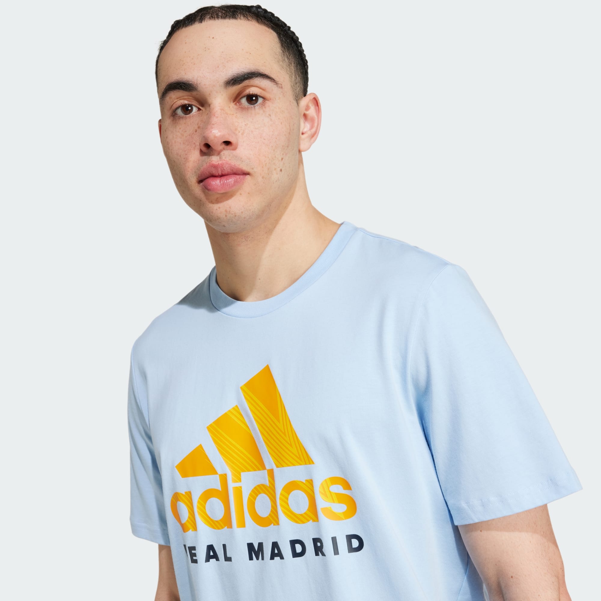 Honour football royalty in this adidas Real Madrid tee. Whether you're pairing it with jeans for a casual coffee run or joggers for an impromptu kickabout, this versatile t-shirt will always be first pick from your wardrobe. Its soft single jersey build keeps you comfortable and that printed crest declares your allegiance to Los Blancos.