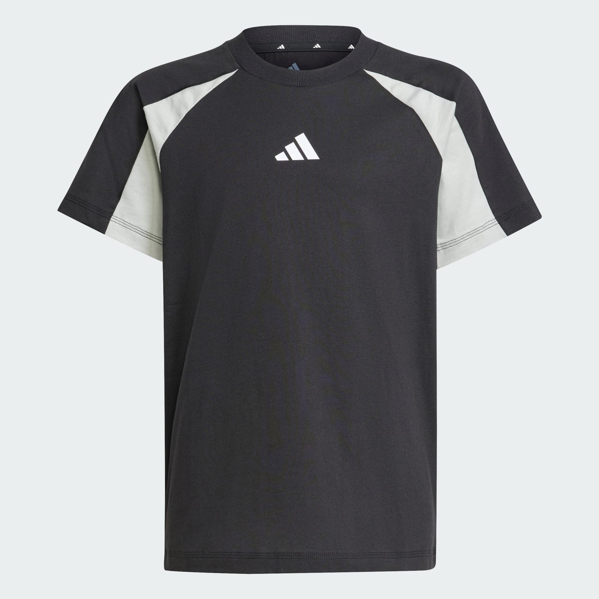 Made to help you express your unique style, this juniors' adidas tee lets you make a bold statement without saying a word. The dynamic colourblocked design and contrast 3 Bar Logo show off your commitment to sport. This tee is made from comfortable cotton single jersey fabric, perfect for adventures of all kinds.