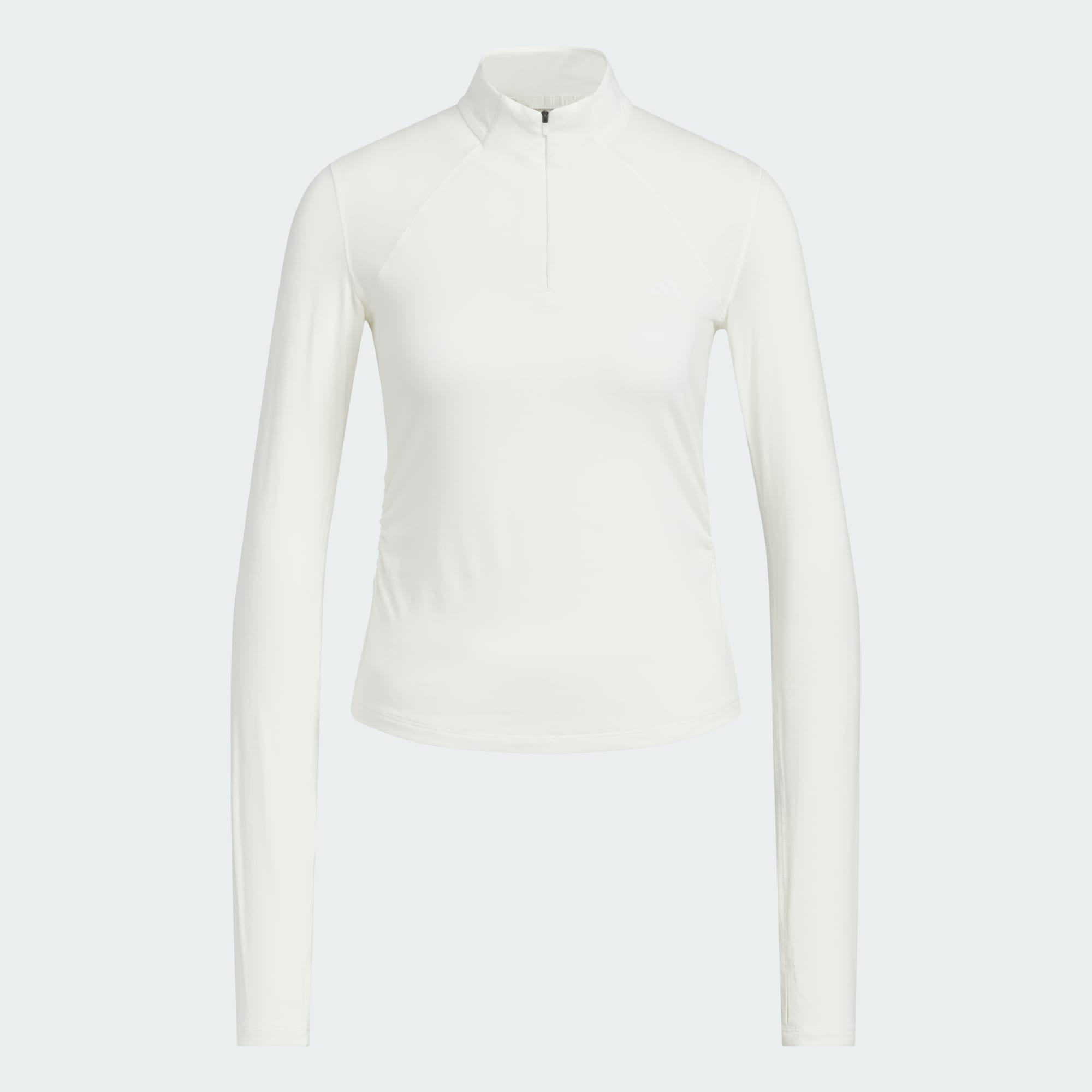 Designed with care, our Slim Long Sleeve Tee is a versatile layer with a sleek silhouette. Offering a soft touch against the skin, the slim fit provides classic comfort. With a short length and a half zip, this t-shirt can be worn as a chic layer or standout solo piece. The gathered waist and curved hem highlight our attention to the finer details. The concealed zip provides a clean look, while thumbholes add styling options for cooler days. With an iconic 3 Bar Logo print for authenticity, this t-shirt embodies adidas style.