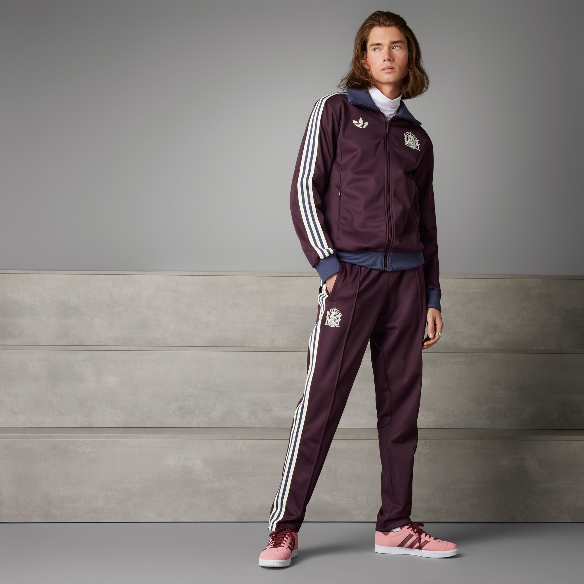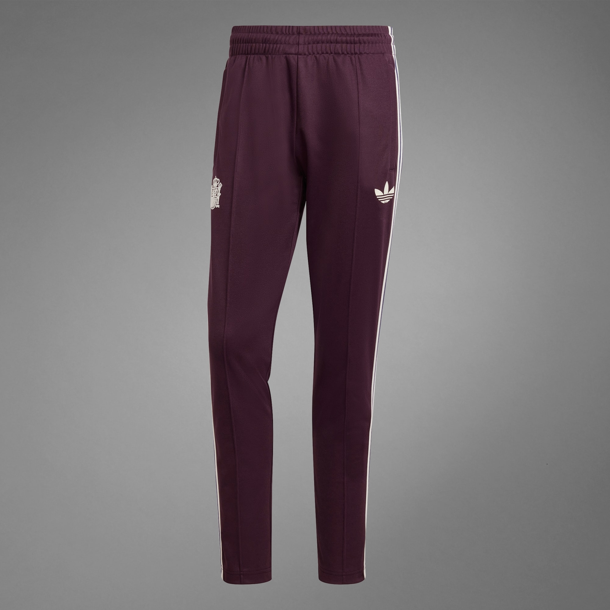 Wherever your beautiful game takes you, show who you back in the Spain Beckenbauer Track Pants. Soft cotton-blend fabric and a slim fit keep you comfortable step after step. Classic 3-Stripes along the sides pair with a suede print Trefoil and team crest, so you can show off your football credentials.By choosing recycled, we're able to reuse materials that have already been created, which helps reduce waste. A minimum of 70% of this product is a blend of recycled and renewable materials.