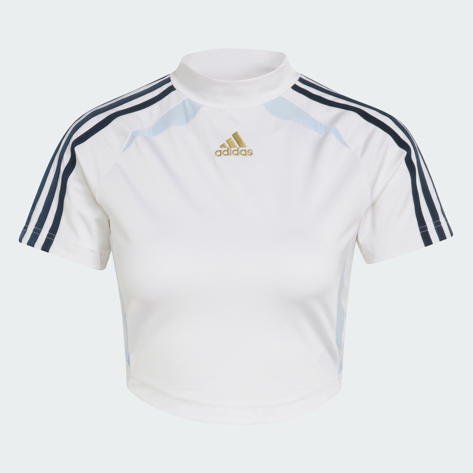 The Teamgeist Baby Tee is where fashion meets iconic adidas heritage. Part of the Adicolor collection, which is all about vibrancy and modern street style, this T-shirt is designed for those who love to make a statement. Crafted from a woven tricot blend in a slim fit creating a sleek silhouette, the fabric moves with you and offers a comfortable feel. The funnel neck offers extra coverage and comfort and adds a further stylish touch to your look. Embrace the adidas Originals spirit and let your wardrobe reflect your unique personality. Whether you're out and about or relaxing at home, this T-shirt is your go-to for effortless style.