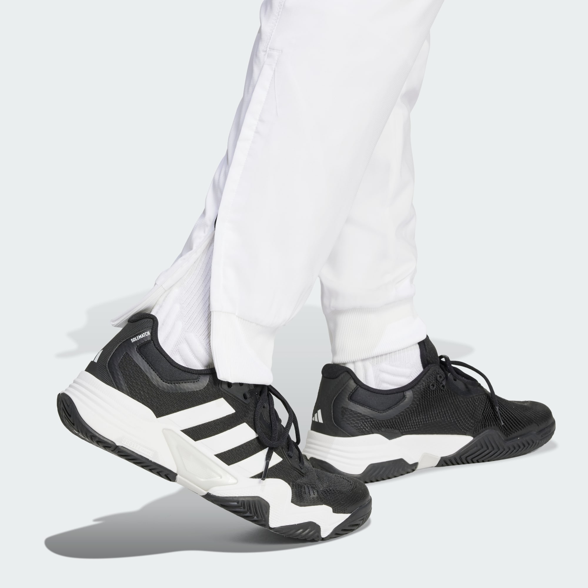 Lightweight, soft and fitted with a breathable lining, these adidas tennis pants keep you looking and feeling your best. AEROREADY technology wicks moisture to help you stay dry and comfortable through intense rallies and sprints across the court. Ankle zips allow for quick on and off, even when you're wearing tennis shoes. Plus, the minimal design and classic fit will take you through your post-match plans in style.