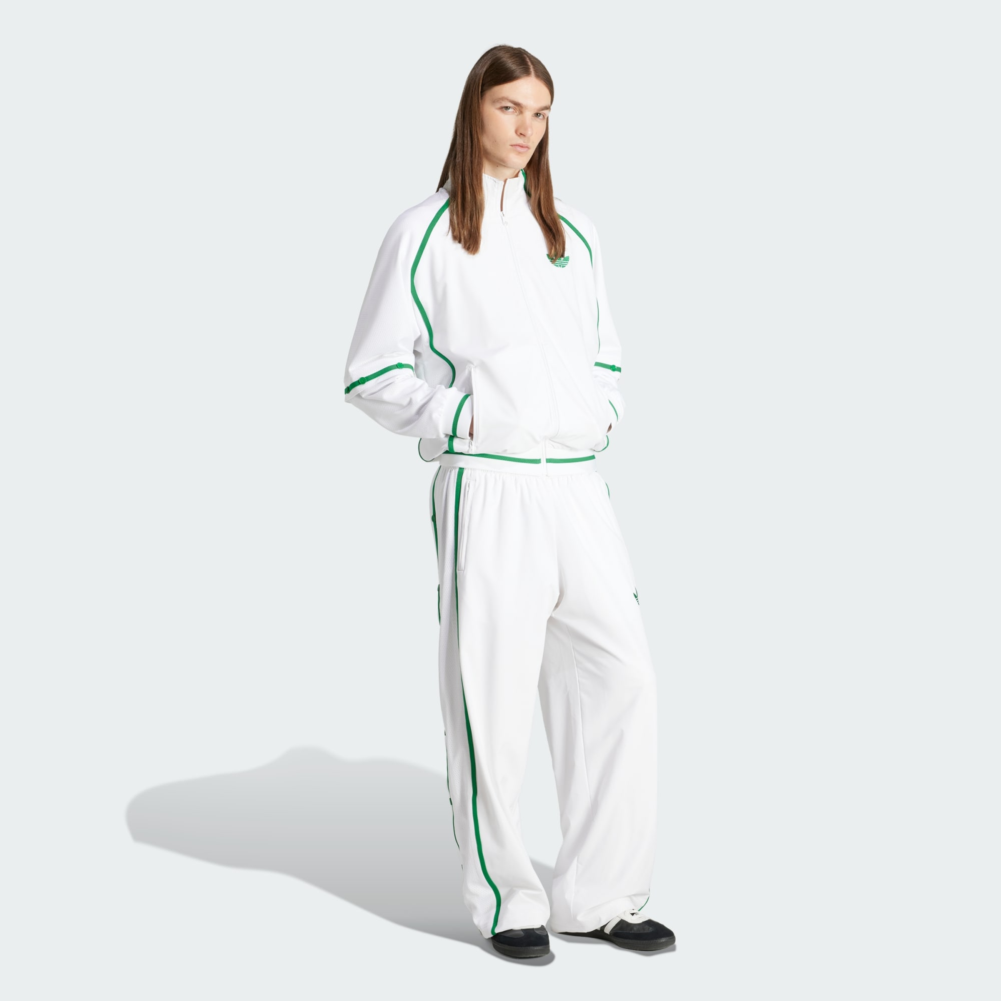 Track pants with iconic details, including snap buttons down the sides.
