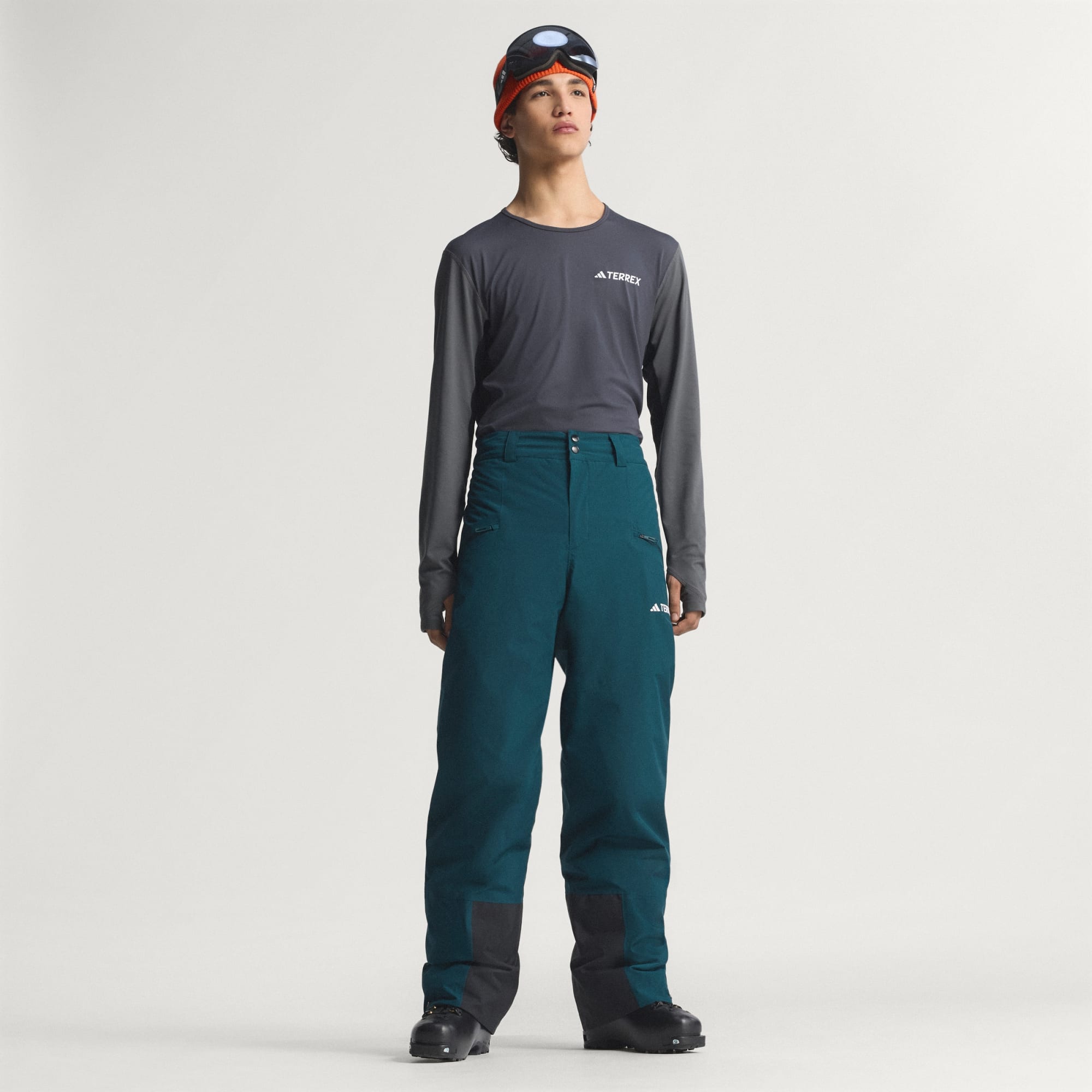 Made for skiing and snowboarding, these adidas Terrex insulated snow pants balance insulated warmth with technical waterproof, breathable storm coverage that's ready for any outdoor adventure. CLIMAPROOF locks out weather and helps sweat escape for dry, comfortable and unrestricted performance. Low-profile insulation offers comfortable performance to -15°C/5°F. Details like fully-taped seams, reinforced cuffs and built-in boot gaiters keep you skiing and riding longer. CLIMAPROOF locks out storms with waterproof materials and design to block harsh weather. Stay free from wind with wind-resistant and breathable material for extra comfort. Engineered features boost protection and breathability.