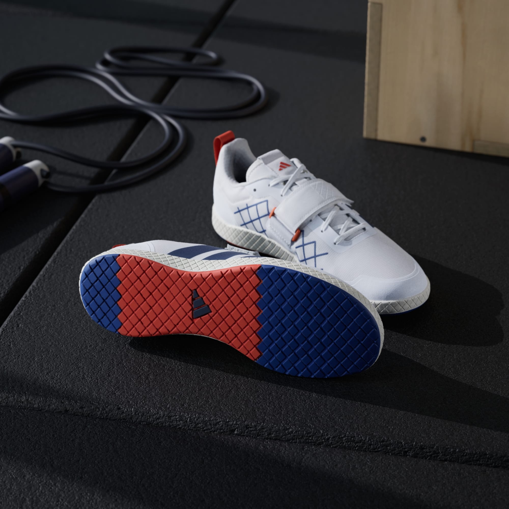 Created for no-fuss lifting, these adidas weightlifting shoes have a zero heel raise to produce the low-to-the-ground stance many deadlifters prefer. Complementing the lace closure, that wide hook-and loop strap adds extra lockdown. A grippy rubber outsole and roomy toe box ensure you're comfortable and stable under the heaviest weights.