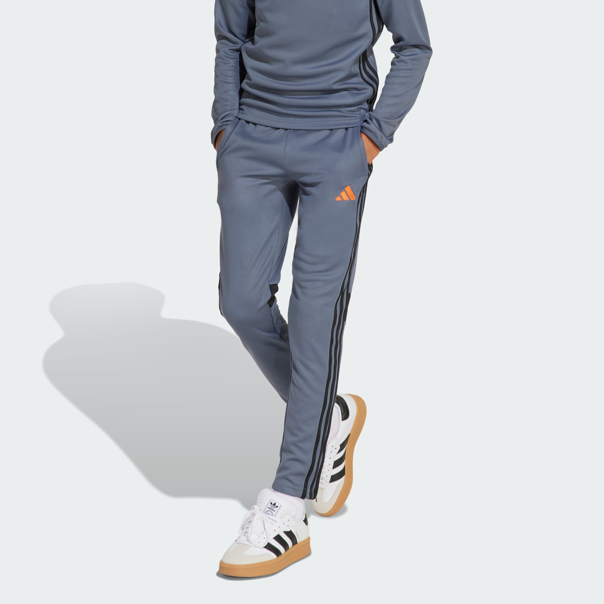 Bring your beautiful game everywhere you go. These juniors' Tiro 25 Essentials pants take their lead from football training apparel to offer a sporty look and comfortable feel. AEROREADY controls moisture to keep you dry, while zip pockets securely stow must-haves. With their smooth fabric and bold style, these adidas track bottoms will quickly become first pick from your wardrobe. This product features at least 20% recycled materials. By reusing materials that have already been created, we help to reduce waste and our reliance on finite resources and reduce the footprint of the products we make.