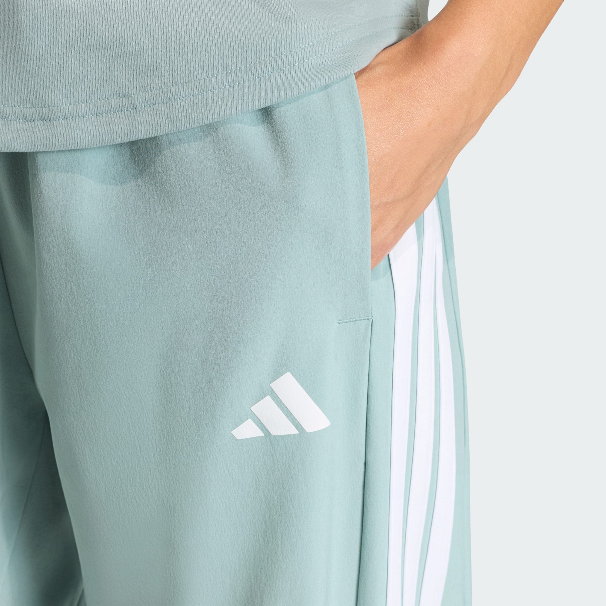 These versatile track pants from adidas get you to and from the gym in comfort. Lightweight woven fabric has a soft hand feel. Tapered legs give them a modern silhouette. CLIMACOOL wicks and disperses sweat for cool, dry and distraction-free performance. CLIMACOOL helps you manage sweat with materials that wick and manage sweat quickly. Its fast-dry fibres give you a fresh-skin feel. This product is made with at least 70% recycled materials. By reusing materials that have already been created, we help to reduce waste and our reliance on finite resources and reduce the footprint of the products we make.