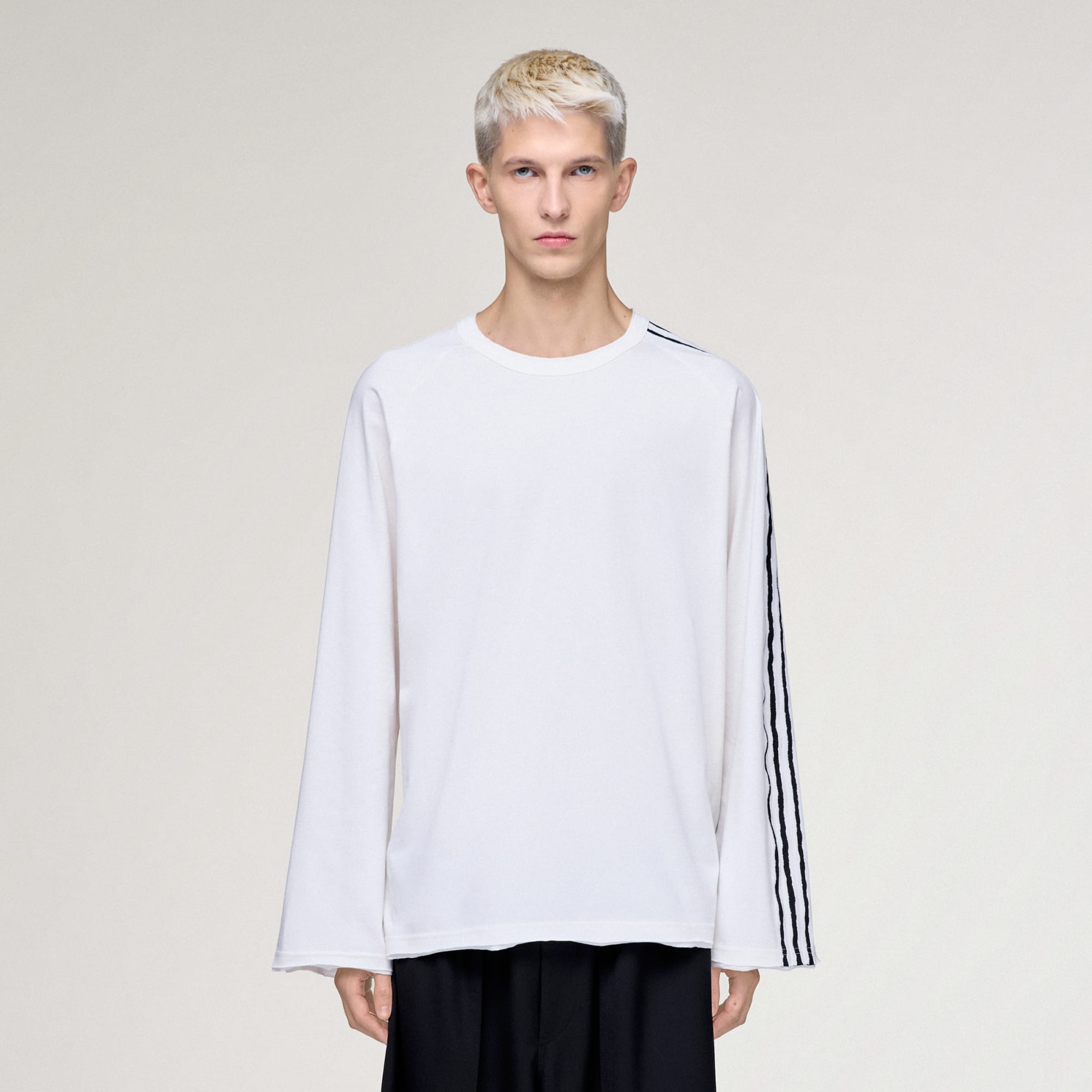 Experience the fusion of Yohji Yamamoto's unconventional fashion and adidas' history in sportswear with the Y-3 Raw Edge 3-Stripes Long Sleeve Tee. Crafted from single jersey knit, this t-shirt offers a soft, comfortable feel. Its simple yet striking design, with the iconic 3-Stripes in raw edge detailing and a Y-3 logo at the back, helps make a bold statement. Suitable for those who appreciate the intersection of high fashion and sportswear, this t-shirt makes for a versatile addition to your wardrobe.